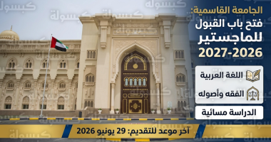 أعلنت الجامعة القاسمية في إمارة الشارقة عن بدء استقبال طلبات القبول في برامج الدراسات العليا (الماجستير) للعام الأكاديمي 2026–2027، وذلك في إطار سعيها المستمر لتعزيز البحث العلمي وتأهيل الكوادر المتخصصة في العلوم العربية والشرعية. وتأتي هذه البرامج معتمدة رسمياً من مفوضية الاعتماد الأكاديمي بوزارة التعليم العالي والبحث العلمي في دولة الإمارات العربية المتحدة.