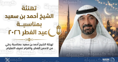 رفع سموّ الشيخ أحمد بن سعيد آل مكتوم، رئيس هيئة دبي للطيران المدني، رئيس مطارات دبي، الرئيس الأعلى الرئيس التنفيذي لطيران الإمارات، أصدق التهاني والتبريكات إلى دولة الإمارات العربية المتحدة؛ قيادةً وحكومةً وشعباً، وذلك بمناسبة حلول عيد الفطر المبارك اليوم الجمعة 20 مارس 2026 (الموافق لـ 1 شوال 1447 هـ)، متمنياً للوطن دوام الرفعة والازدهار في ظل قيادته الرشيدة.
