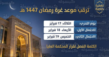ج: سيتم الإعلان مساء يوم الثلاثاء 29 شعبان 1447 هـ، الموافق 17 فبراير 2026 م، بعد صلاة المغرب مباشرة.