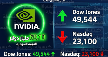 - مؤشر ناسداك المجمع: الذي تغلب عليه أسهم التكنولوجيا، انخفض بواقع 51.5 نقطة ليصل إلى 23,100.583 نقطة، متأثراً بعمليات جني أرباح على سهم إنفيديا.