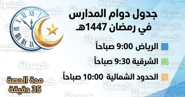 جدول مواعيد الدوام الدراسي في رمضان 2026 (كافة المناطق)