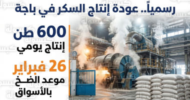 استئناف الإنتاج بالشركة التونسية للسكر بباجة رسمياً وضخ الكميات في الأسواق غداً الخميس 26 فبراير