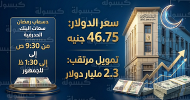 سعر الدولار (متوسط البنوك) 46.75 جنيه مصري