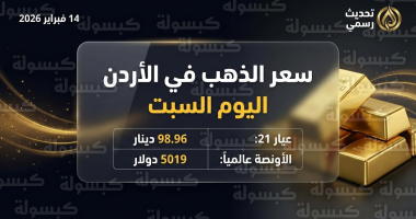 جدول أسعار الذهب في الأردن اليوم (السبت 14-02-2026)