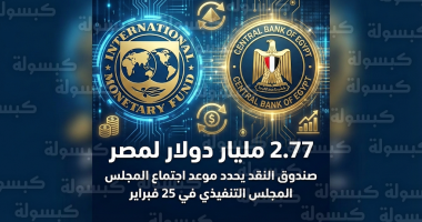صندوق النقد الدولي يدرج مصر رسميا على جدول اجتماعات مجلسه التنفيذي لحسم صرف 2.77 مليار دولار