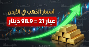 - سبيكة 5 غرامات: 565.99 دينار أردني.