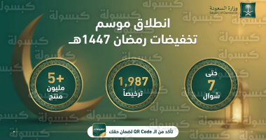 كشفت وزارة التجارة السعودية اليوم عن تفاصيل موسعة لموسم تخفيضات رمضان المبارك لعام 2026 (1447هـ)، معلنةً عن إصدار 1,987 ترخيصاً تجارياً حتى الآن، ووفقاً للبيان الرسمي، تتيح هذه التراخيص للمستهلكين في كافة مناطق المملكة الوصول إلى عروض حصرية تشمل أكثر من 5 ملايين منتج متنوع، في خطوة تهدف إلى تخفيف الأعباء الاقتصادية وتلبية احتياجات الأسر قبل حلول الشهر الفضيل.