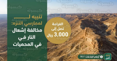 1، هل تشمل غرامة إشعال النار استخدام “المناقل” المرتفعة عن الأرض؟نعم، يُمنع إشعال النار بكافة أشكالها في غير الأماكن التي تحددها الجهات المشرفة على المحمية، حتى وإن كانت في أدوات مخصصة، ما لم تكن المنطقة مسموحاً فيها بالتنزه وإشعال النار.