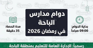 ملخص مواعيد الدوام المدرسي في الباحة – رمضان 2026