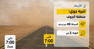 تفاصيل تنبيه المركز الوطني للأرصاد لمنطقة الجوف
