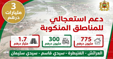- البنية التحتية (1.7 مليار درهم): لإعادة بناء الطرق المقطوعة، القناطر، وتأهيل شبكات الكهرباء والماء الصالح للشرب.