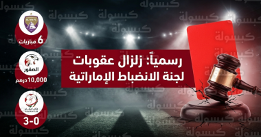 - توجيه عقوبة “لفت نظر” لناديي العين وكلباء بسبب سلوكيات جماهيرية وتجاوزات لفظية تجاه طواقم التحكيم في مسابقات الفئات السنية.