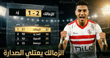 نجح الفريق الأول لكرة القدم بنادي الزمالك في خطف صدارة جدول ترتيب الدوري المصري الممتاز 2025-2026، بعد تحقيقه فوزاً درامياً على نظيره نادي “زد” في المباراة التي جمعتهما اليوم الثلاثاء 24 فبراير 2026، وبهذا الانتصار، يرفع “الفارس الأبيض” رصيده إلى النقطة 37، مستغلاً تعثر المنافسين في جولة حبست الأنفاس.