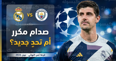 • تيبو كورتوا يتوقع صداماً جديداً ومكرراً بين ريال مدريد ومانشستر سيتي في ثمن نهائي دوري أبطال أوروبا 2026.