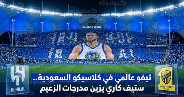 في خطوة إبداعية غير مسبوقة في الملاعب السعودية، خطفت جماهير نادي الهلال الأنظار قبل انطلاق صافرة الكلاسيكو اليوم، برفع “تيفو” عملاق يجسد نجم كرة السلة الأمريكية ونجم فريق جولدن ستيت واريورز، ستيف كاري.