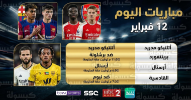 جدول مباريات اليوم الخميس 12 فبراير 2026: القنوات الناقلة لقمة برشلونة وأرسنال وانطلاقة الجولة 22 من دوري روشن (تحديث رسمي)