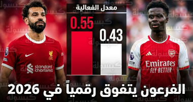 كشفت بيانات الأداء المحدثة عن تفوق واضح لصلاح في “معدل المساهمة” مقارنة بساكا، الجناح الأبرز في تشكيلة أرسنال متصدر الترتيب حالياً، حيث جاءت الأرقام لتنصف النجم المصري كالتالي: