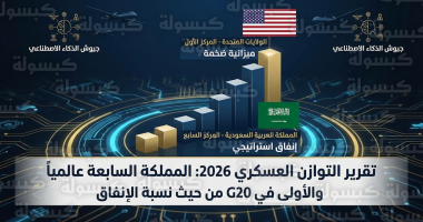 السعودية تحتل المرتبة السابعة عالمياً في الإنفاق العسكري لعام 2026 وتتصدر دول العشرين بنسبة 6.8% من ناتجها المحلي