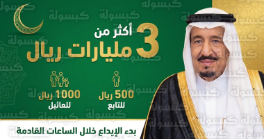 أصدر خادم الحرمين الشريفين الملك سلمان بن عبدالعزيز آل سعود، أمراً كريماً اليوم الخميس 19 فبراير 2026 (الموافق 2 رمضان 1447هـ) -بناءً على ما رفعه صاحب السمو الملكي الأمير محمد بن سلمان بن عبدالعزيز ولي العهد رئيس مجلس الوزراء- بصرف مبالغ مالية تتجاوز 3 مليارات ريال كمعونة رمضانية لمستفيدي الضمان الاجتماعي، وتأتي هذه المبادرة السنوية في سياق اهتمام القيادة الرشيدة بتلمس احتياجات المواطنين خلال الشهر الفضيل.