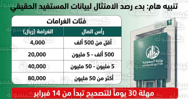 | أقل من 500 ألف ريال | 4,000 | إنذار + مهلة 30 يوماً |