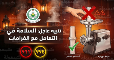 وجهت المديرية العامة للدفاع المدني اليوم، الخميس 26 فبراير 2026 (الموافق 9 رمضان 1447هـ)، رسالة توعوية عاجلة للمواطنين والمقيمين في كافة أنحاء المملكة، دعت خلالها إلى توخي أقصى درجات الحيطة والحذر عند استخدام الفرامات الكهربائية والأدوات الحادة في المنازل، وأكدت المديرية أن الالتزام الصارم بتعليمات التشغيل يمثل الركيزة الأساسية للوقاية من الحوادث المنزلية المتكررة خلال الشهر الفضيل وحماية الأرواح.