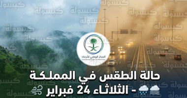 أصدر المركز الوطني للأرصاد تقريره اليومي حول حالة الطقس في المملكة العربية السعودية لليوم الثلاثاء 24 فبراير 2026، مشيراً إلى استمرار التقلبات الجوية التي تشمل نشاطاً للرياح السطحية المثيرة للأتربة والغبار، مما قد يؤدي إلى تدني مدى الرؤية الأفقية، تزامناً مع فرص لهطول أمطار متفرقة وتكون الضباب في المرتفعات الجبلية.