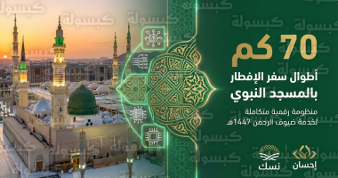 وتبرز لغة الأرقام حجم هذا العمل الضخم، حيث يصل امتداد سفر الإفطار عند فرشها بشكل مستقيم إلى نحو 70 كيلومترًا، مما يتطلب دقة عالية في الإدارة والرقابة لضمان انسيابية الحركة داخل المسجد وفي ساحاته الخارجية، خاصة مع الكثافة العددية التي يشهدها المسجد اليوم السبت 21 فبراير 2026.