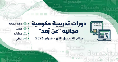 - وزارة المالية: تقديم 8 دورات تدريبية مجانية تخصصية مع شهادة إتمام. اضغط هنا للتسجيل