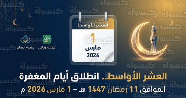 | بداية العشر الثانية (المغفرة) | الأحد 1 مارس 2026 | 11 رمضان 1447هـ |